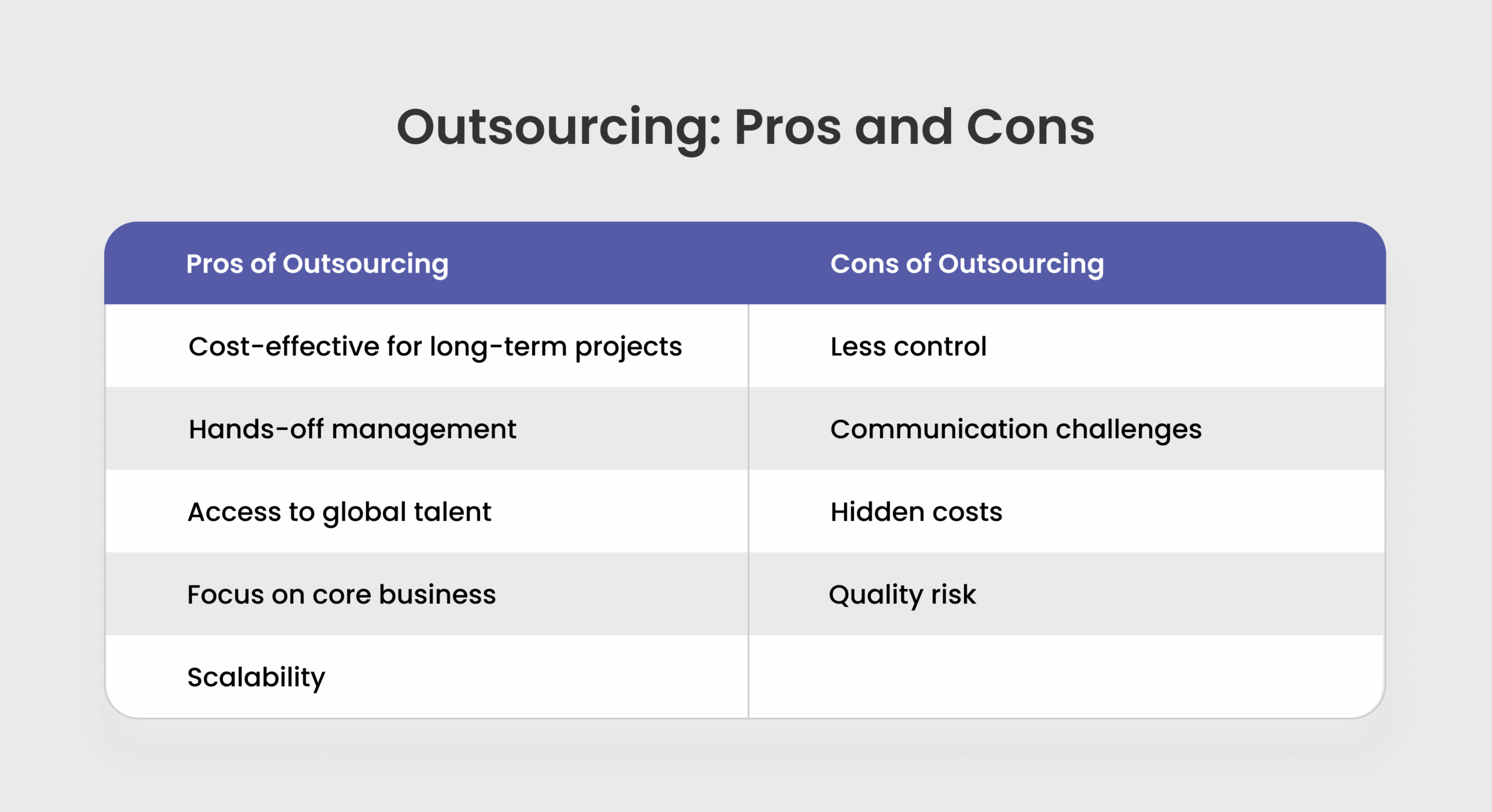 If you want to delegate an entire project, reduce management effort, and scale faster at lower long-term costs, outsourcing delivers better value. And sometimes, the best answer lies in a hybrid approach, blending both to balance control with efficiency.