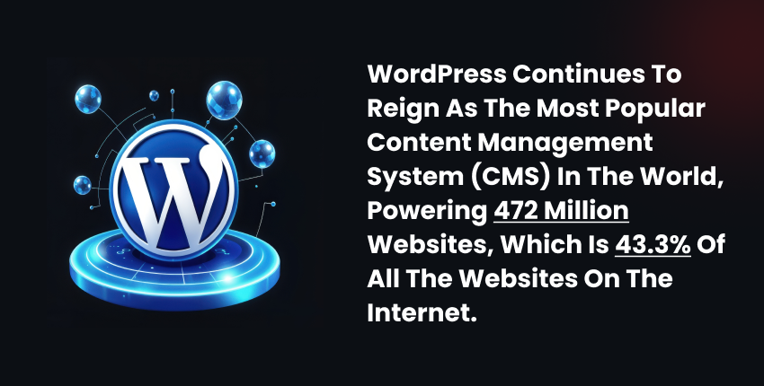 According to the colorlib WordPress statistics. WordPress continues to reign as the most popular content management system (CMS) in the world, powering 472 million websites, which is 43.3% of all the websites on the internet.